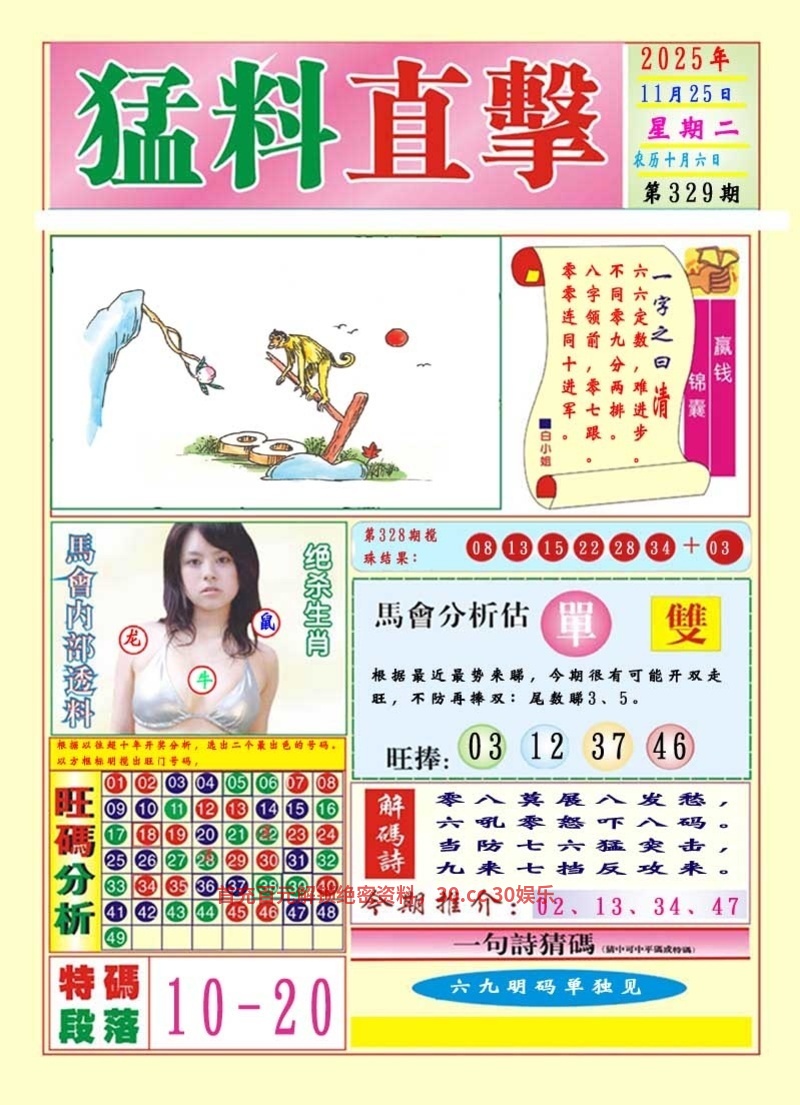 | 327期:天地+二肖〖地肖+龙猴〗开:蛇37准 |