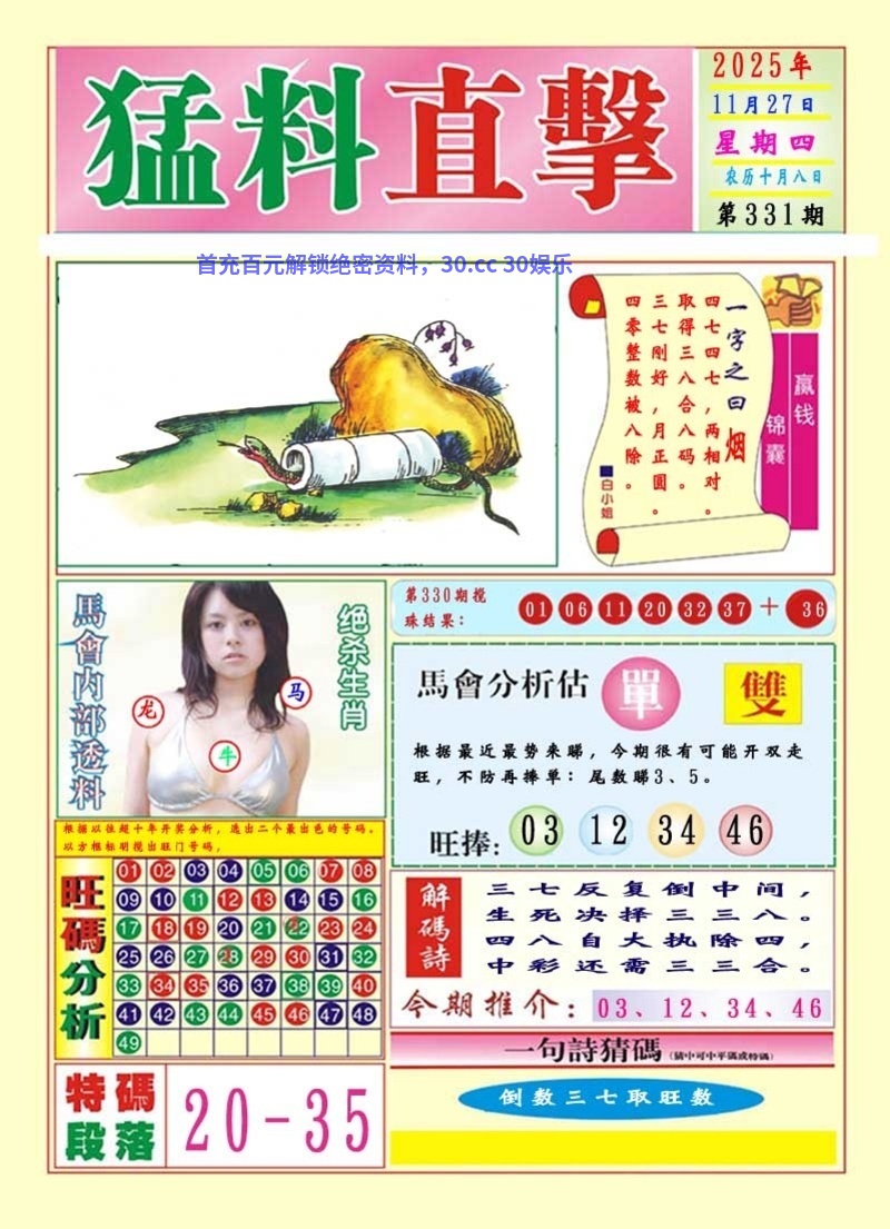 | 330期:天地+二肖〖天肖+羊鸡〗开:马36准 |